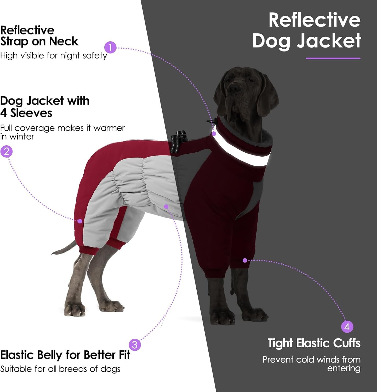 Winter days are short, meaning many walks happen in low-light conditions. Safety is a priority with this dog winter coat, as it features large reflective strips on the back and neck. These strips ensure your dog remains highly visible to vehicles and cyclists during early morning or late-night walks. When choosing a dog winter coat, visibility should always be a top consideration to keep your pet safe in all environments.